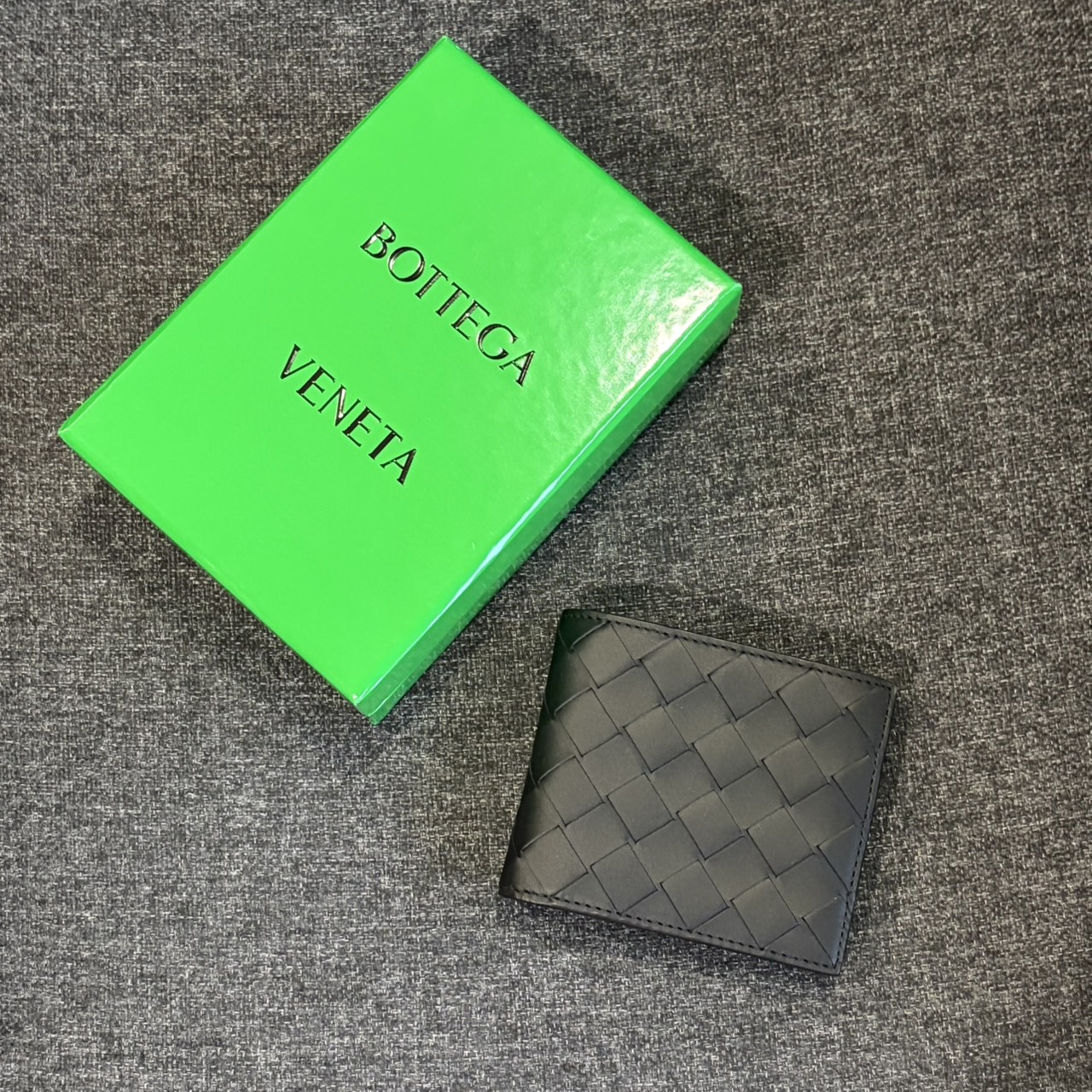 經典大編織羊皮系列 對開短夾 黑