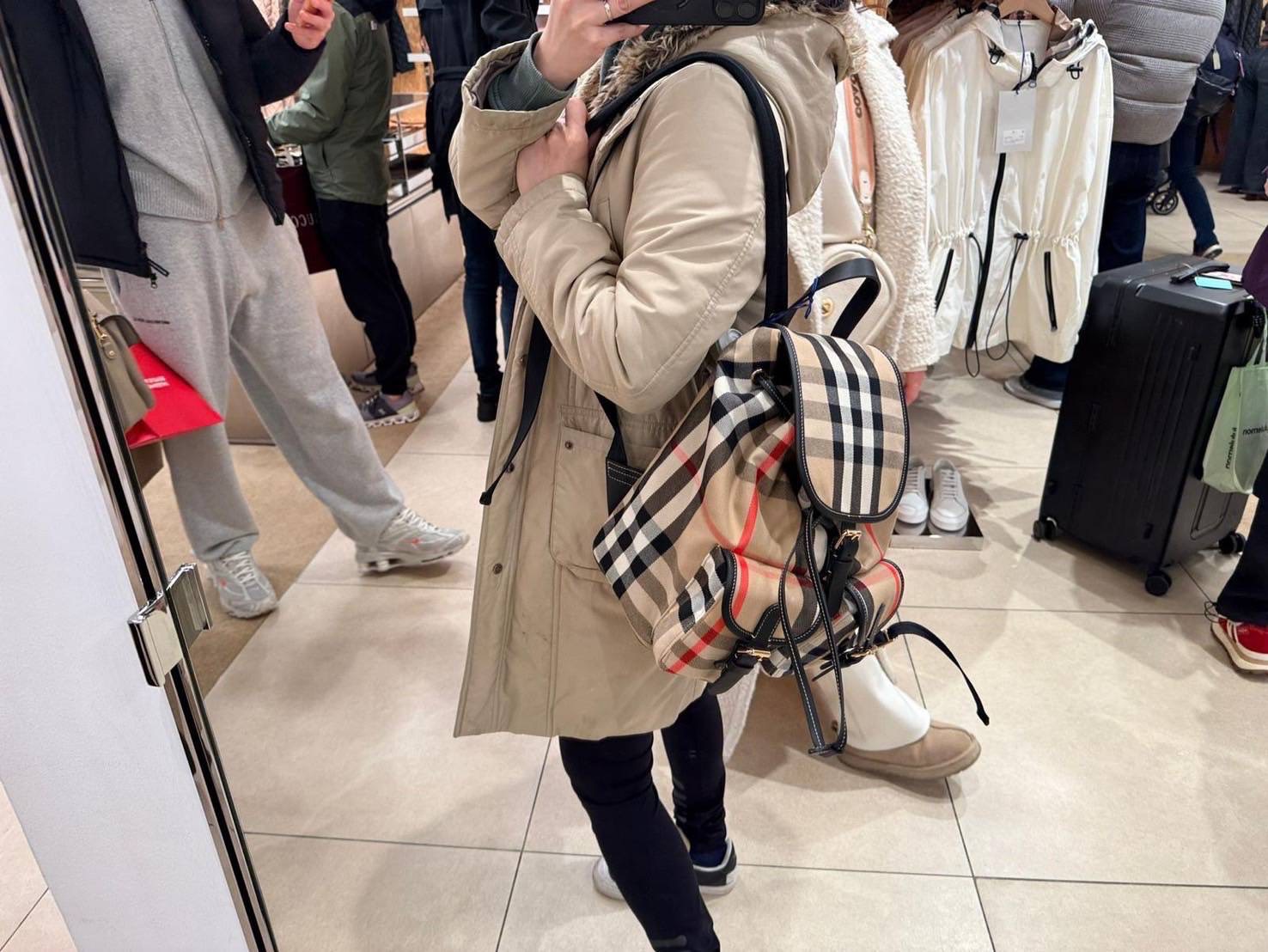 BURBERRY 新款尼龍格紋雙口袋掀蓋後背包