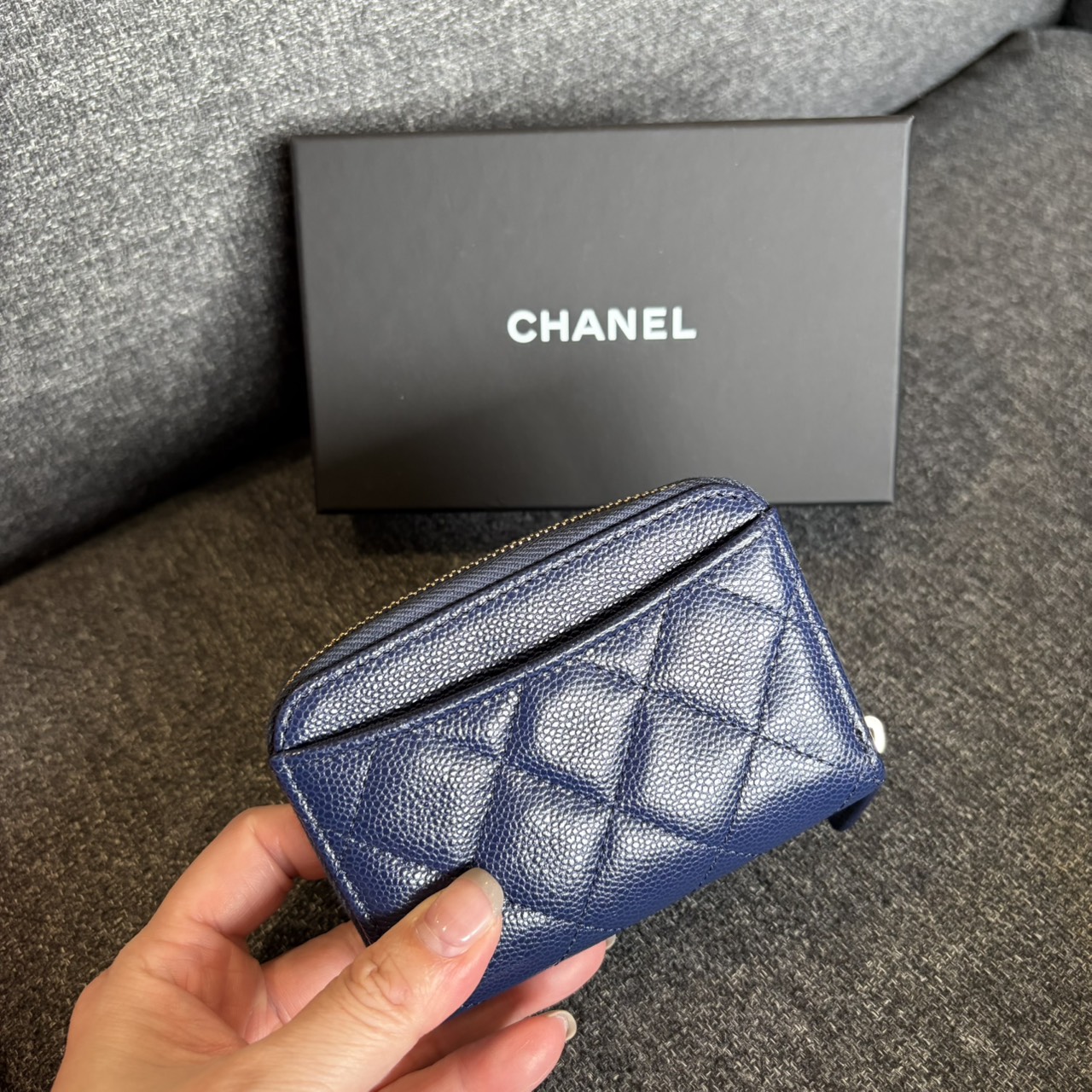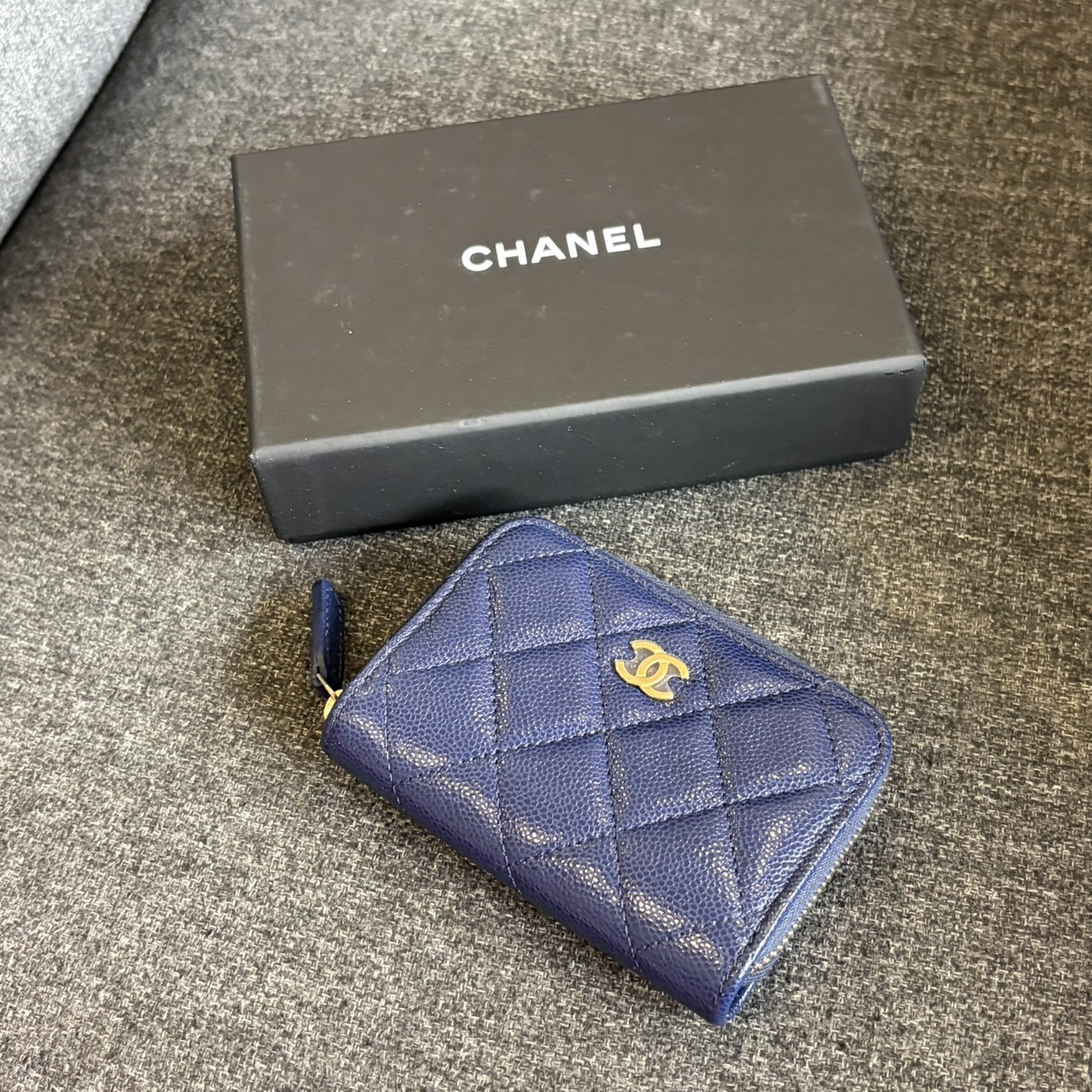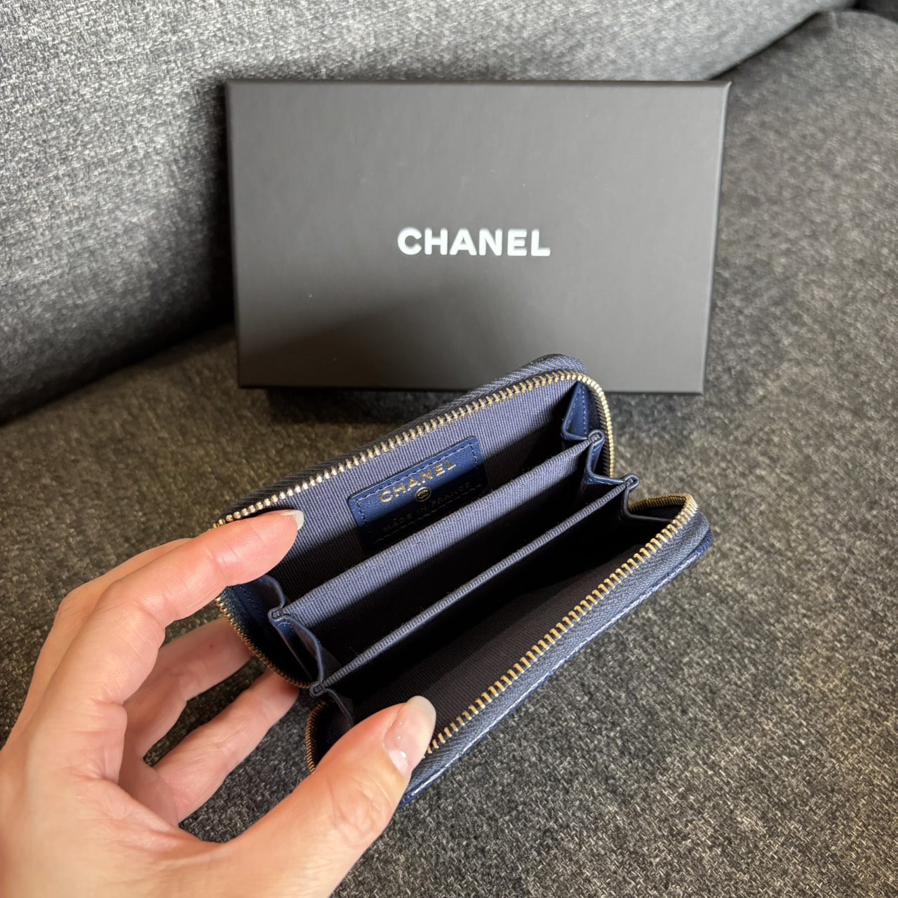 經典ㄇ型卡片零錢包 荔枝牛皮深藍金