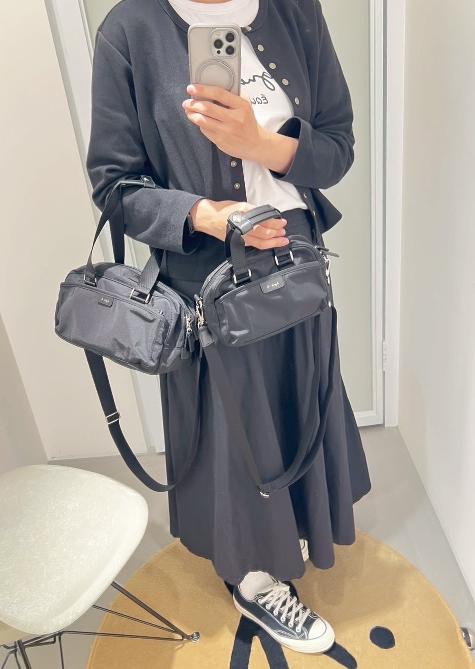 agnes b. 經典尼龍波士頓包《XS 長把》