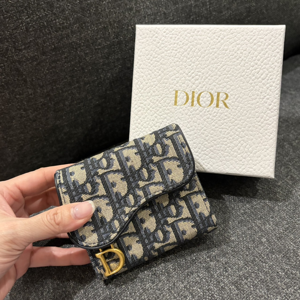 經典老花馬鞍短夾 經典深藍