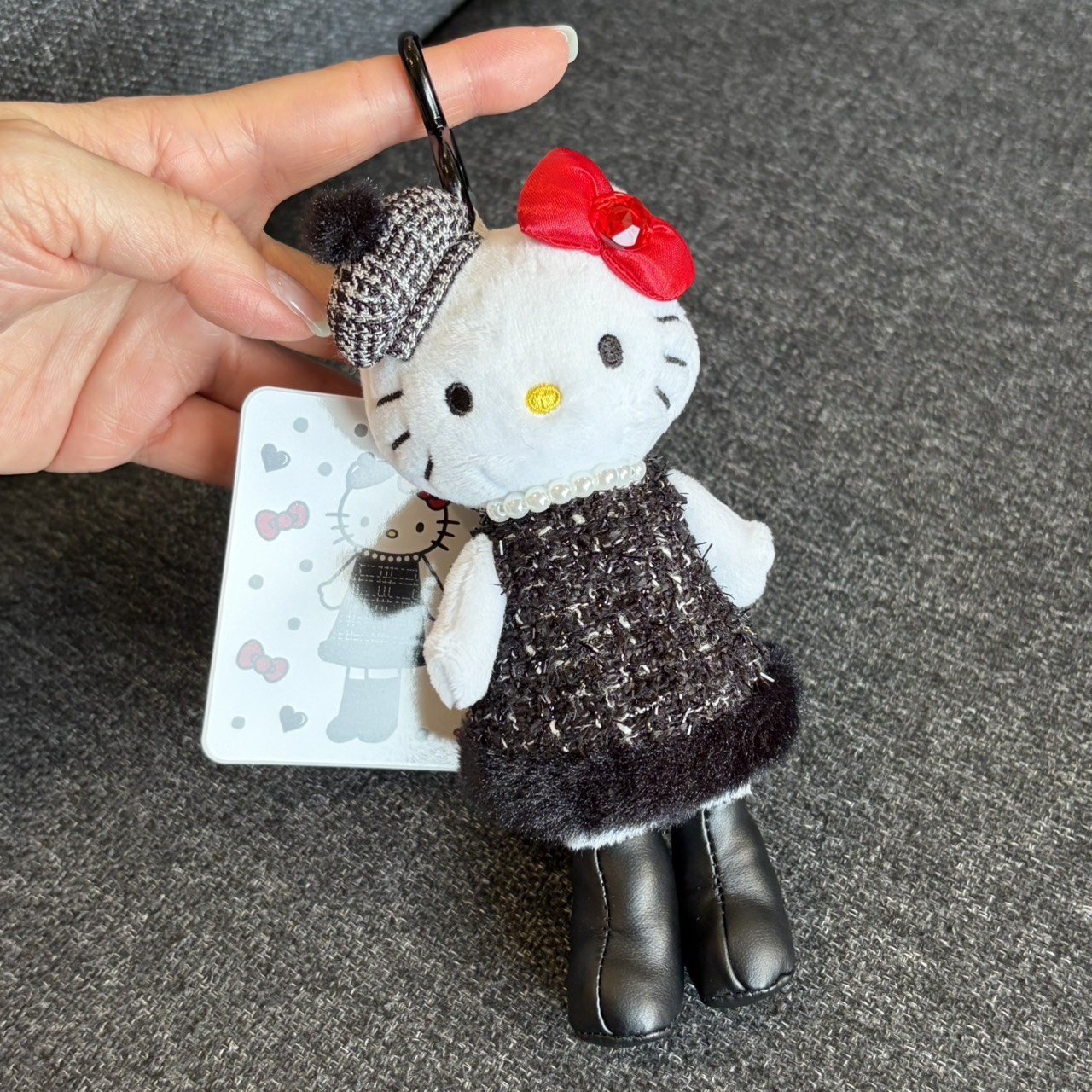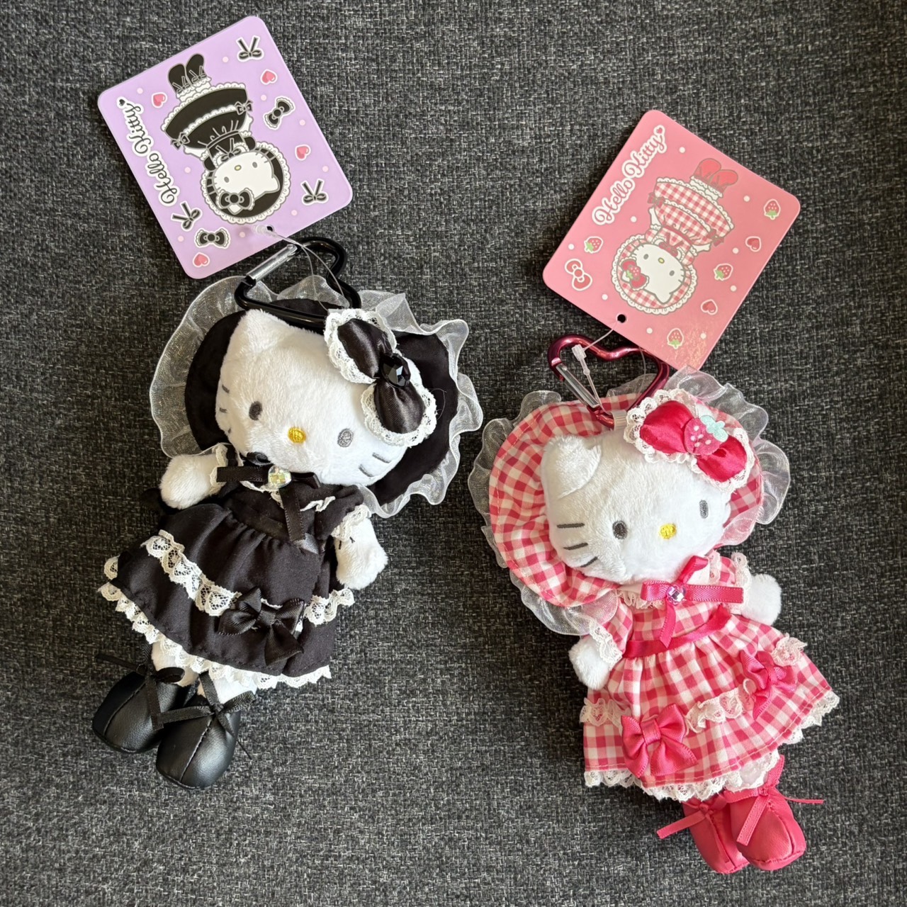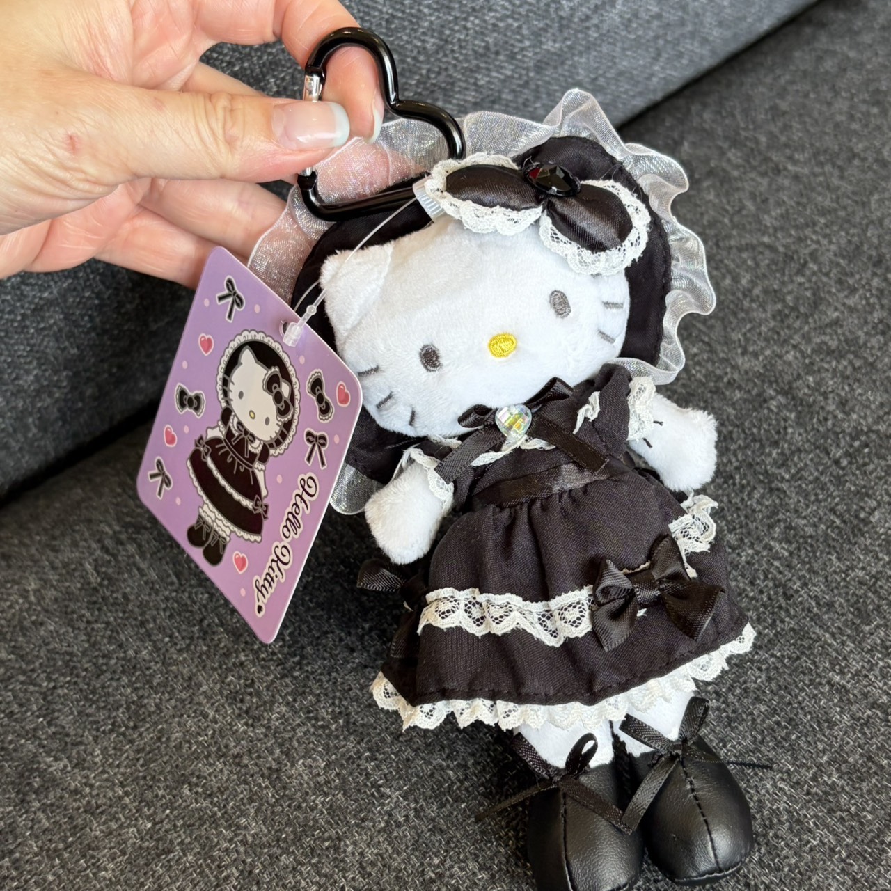 HELLO KITTY 白KITTY長腿吊飾 貝蕾帽黑 蘿莉黑 蘿莉桃