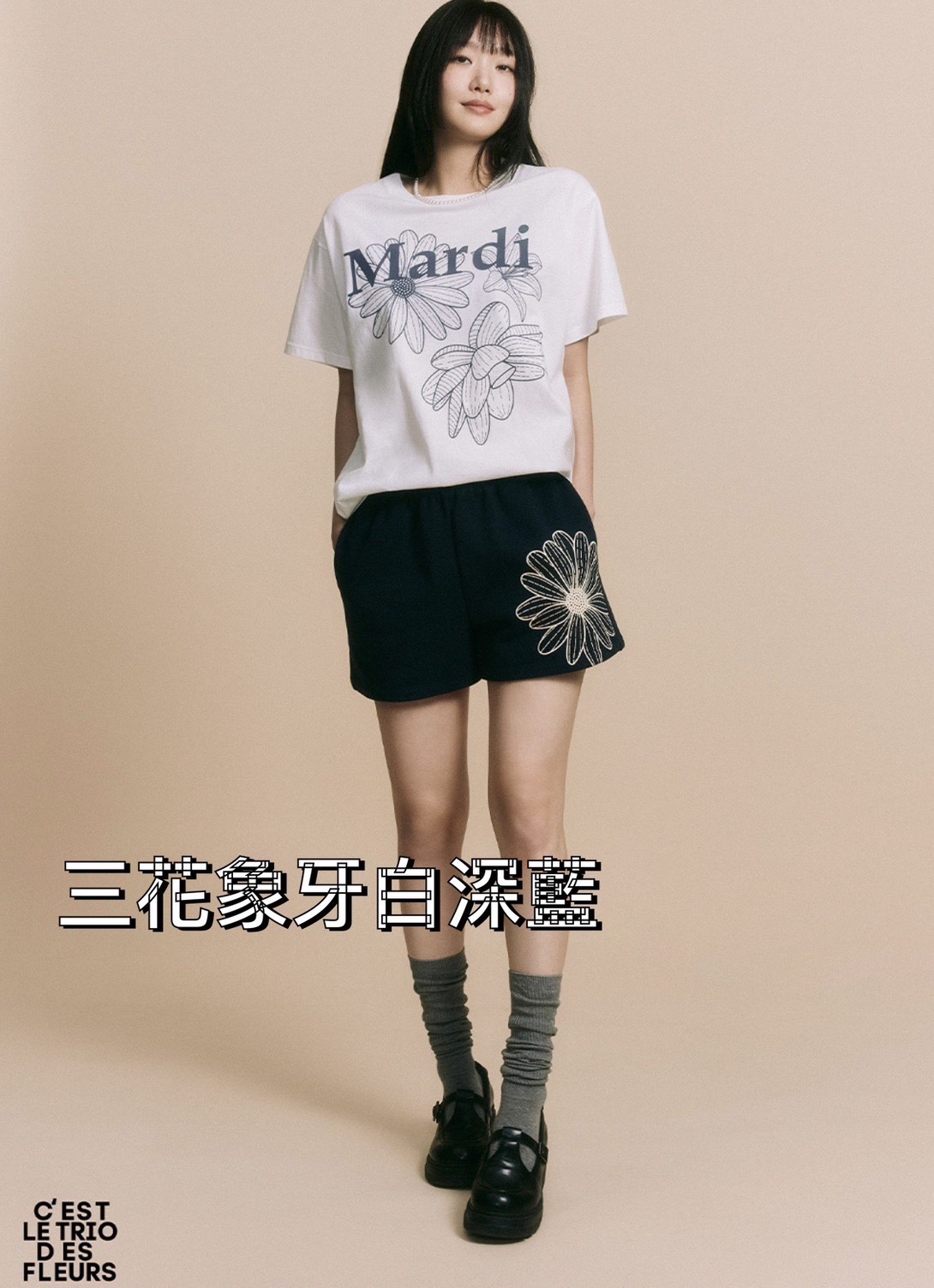 MARDI MERCREDI 經典短TEE 三花象牙白深藍