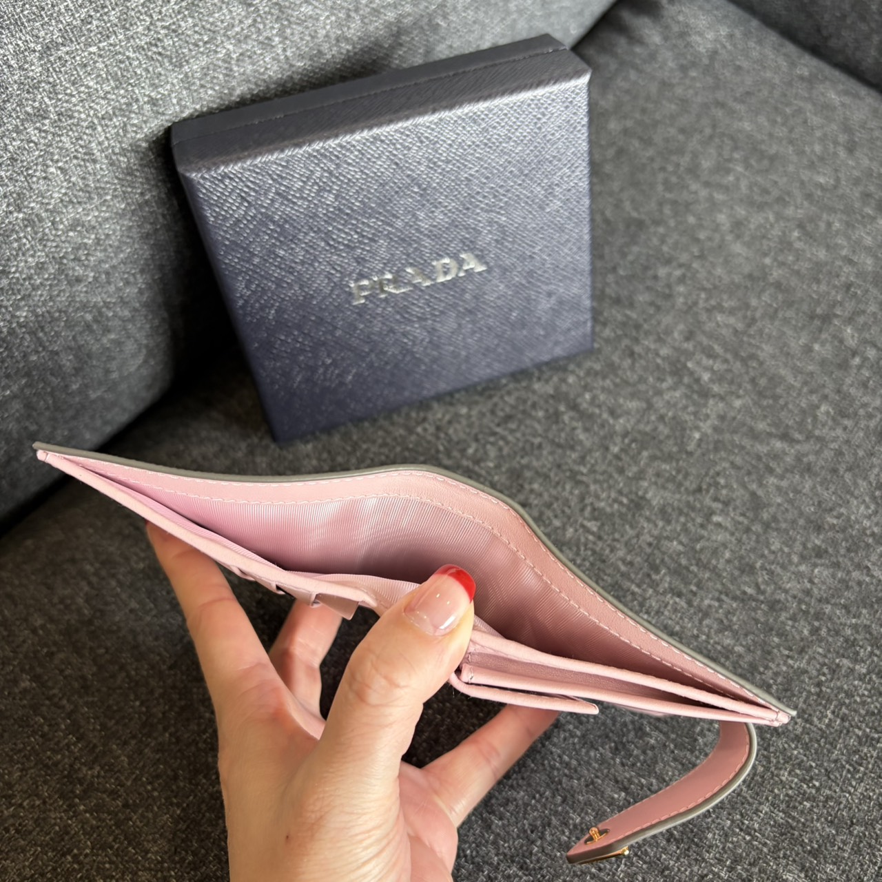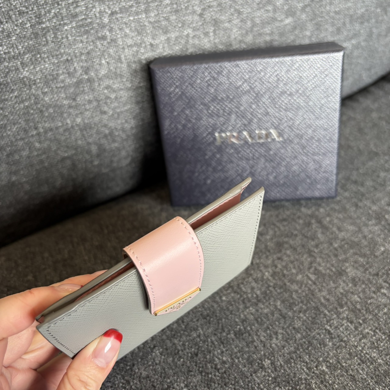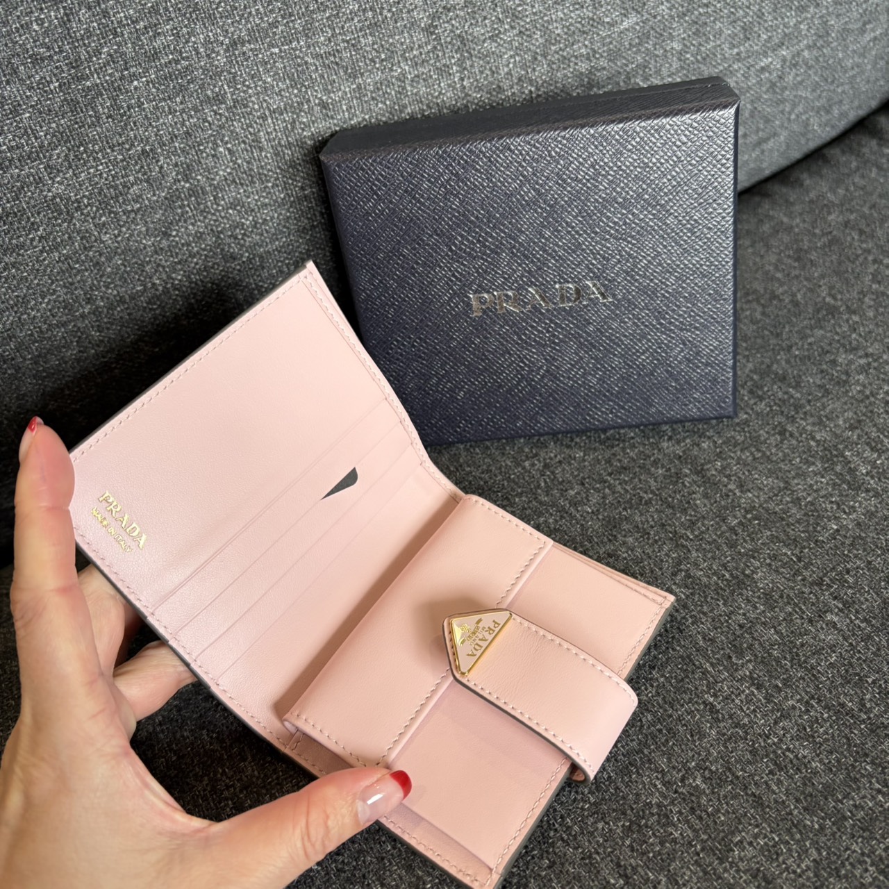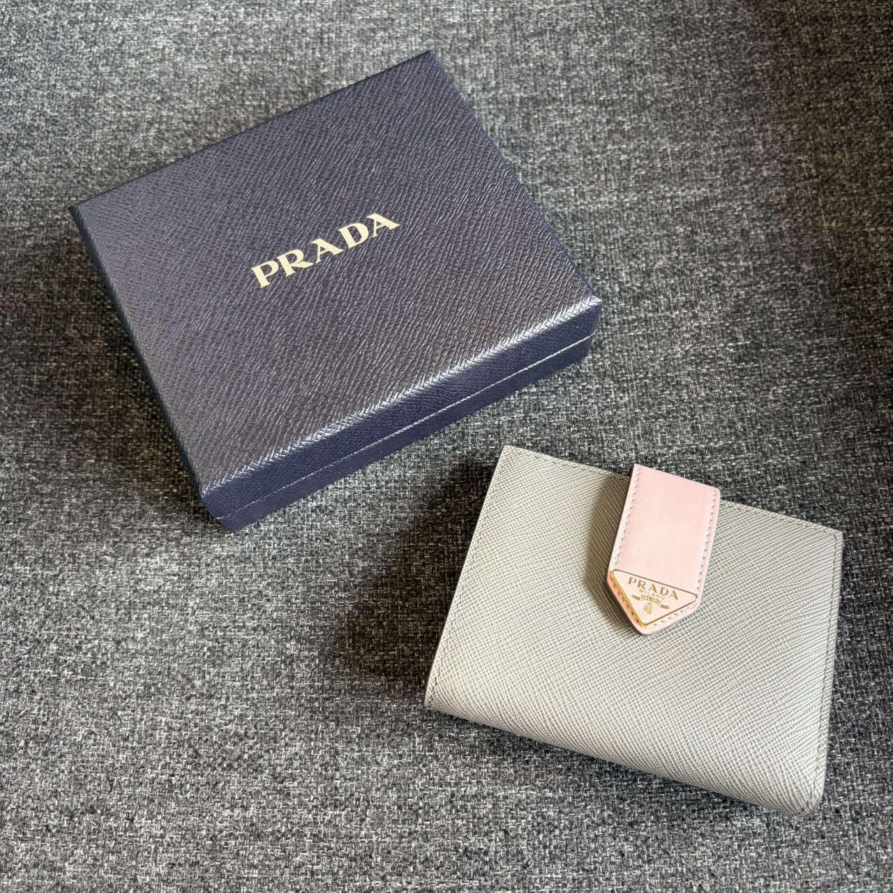 PRADA 防刮牛皮三角LOGO牌釦子短夾